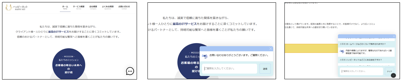 ・AIチャットボットとは、お客様からの質問に24時間自動で対応できるチャット機能です。